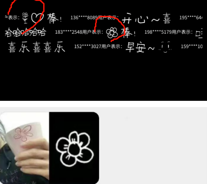第四是在易烊千玺设计的弹幕中,有许多可爱小图案,跟刘浩存以前晒出的自己在手上画的图案极为相似。