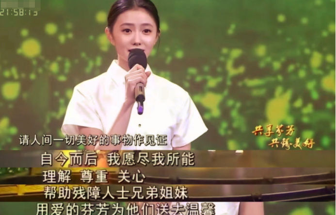 当她在晚会上说出“帮助残障人士”“用爱的芬芳为他们送去温馨”时,让无数网友倍感讽刺。