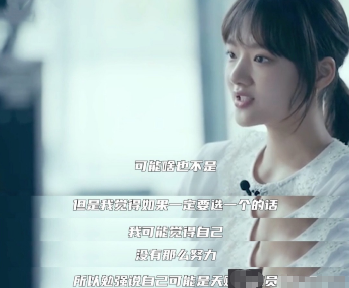 任敏回答说,“可能啥也不是,但如果一定要选一个的话,因为觉得自己没有那么努力,所以勉强说自己可能是天赋型演员”。