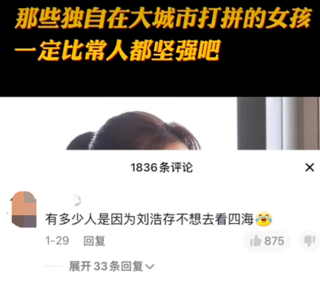 宣传城市打拼不容易时,下面的评论是“有刘浩存不看”。