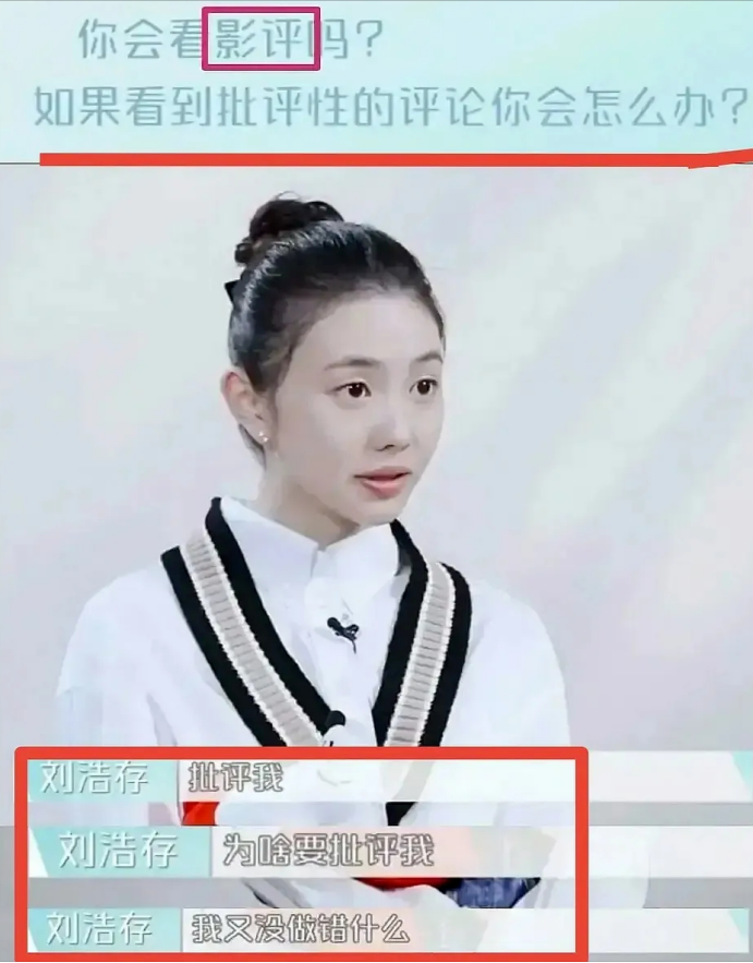 听完这话,刘浩存表现的很是不解,然后一脸懵懂的反问:批评我?为啥要批评我?我又没做错什么!