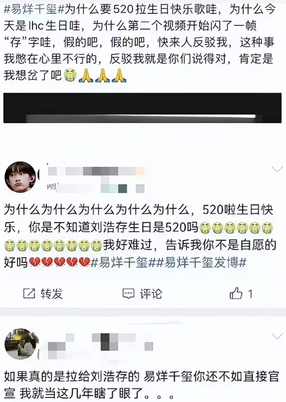 不过易烊千玺的一些粉丝表示“不能接受”“我就当这几年瞎了眼”“告诉我你不是自愿的”......