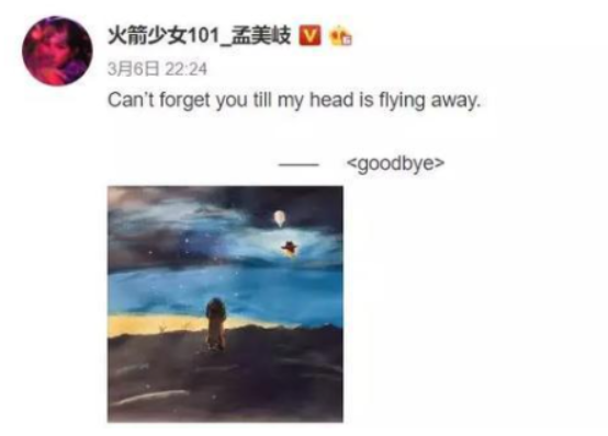 2020年的3月份,孟美岐在社交平台发布了一张画。