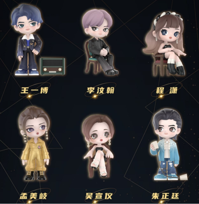就是大家一起买一套盲盒,然后根据各自喜欢的偶像艺人来挑选想要的。