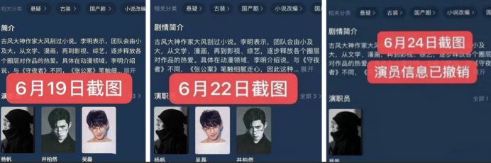 等到6月24日,两位演员的信息直接全被删除,只留下了导演杨帆的资料。