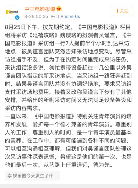 让人意外的是,这件事还未过去太久,很快又传出了吴谨言耍大牌的信息。