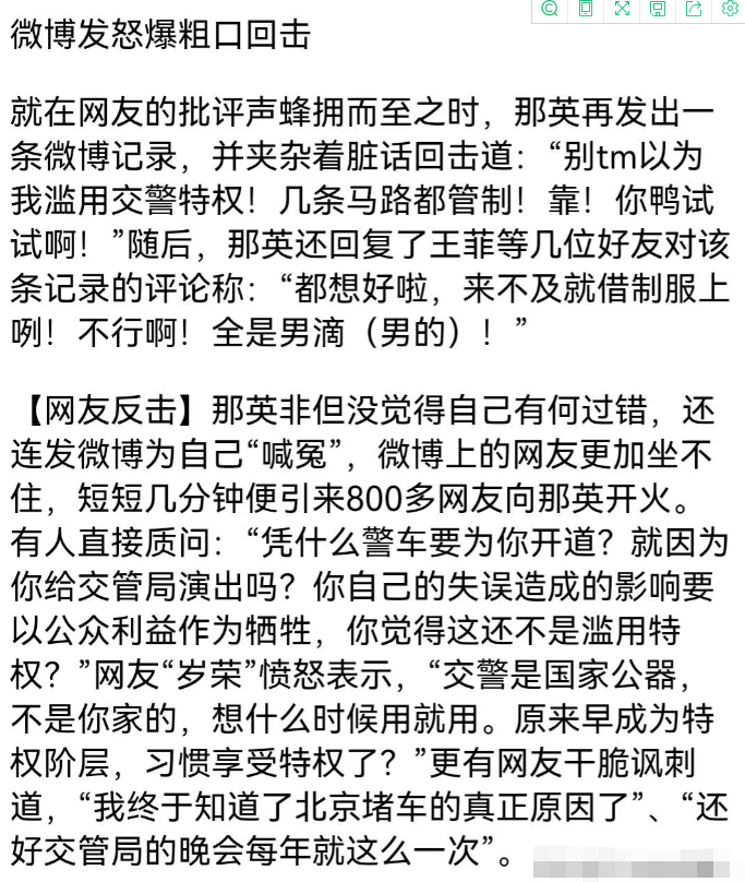 这番言论引起了许多网友的不满,毕竟演出是那英个人的事,交警开道就是滥用警力了。