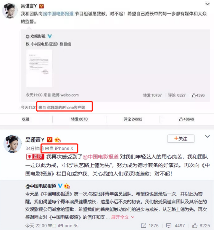 吴谨言与签约经纪公司这才意识到问题的严重性,赶紧进行了道歉。