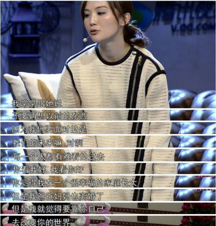 “我常常跟她说,不要再想以前的东西,因为我们要面对的是我们的未来。每一个人都有难看的过去,你看我好,我看你好,你觉得我在一个很幸福的家庭长大。但是我爸妈也离婚了,我就觉得要靠你自己去改变你的世界。”