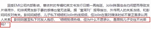 面对蔡依林一直否认跟彭于晏的恋情,彭母也曾抱怨说“明明很熟络,为什么不承认?”