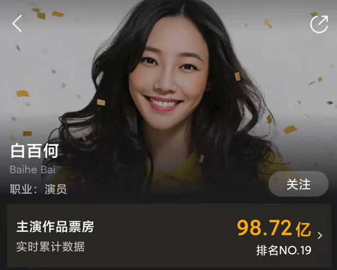 白百何在年底以年度主演电影30.64亿元的票房成绩登顶中国年度电影票房排行榜榜首。