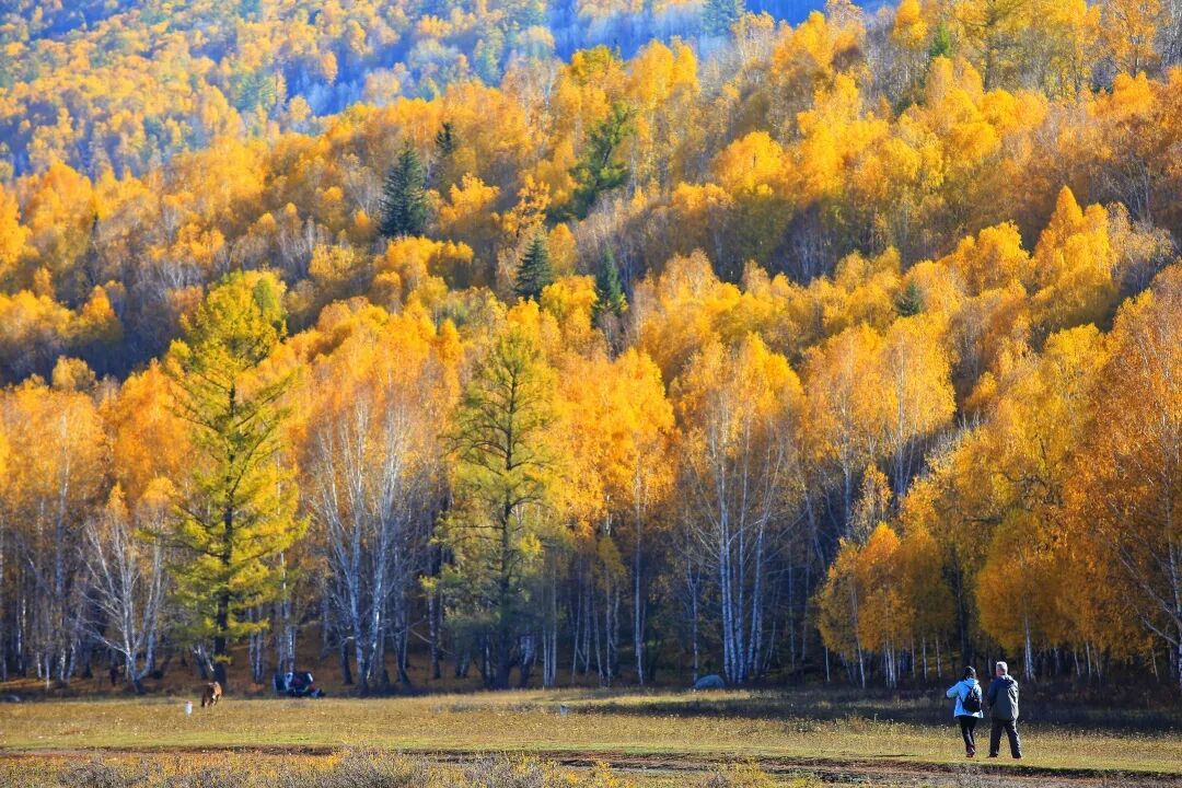 被称为“西北第一村”的白哈巴村(5月至10月15日;门票50元)处于中国版图的最西北端,1.5公里外便是中国与哈萨克斯坦的国境线。深秋中的白哈巴,白桦、落叶松、杨树叶集体从金灿灿向红彤彤渐变,活脱脱一座童话边城。