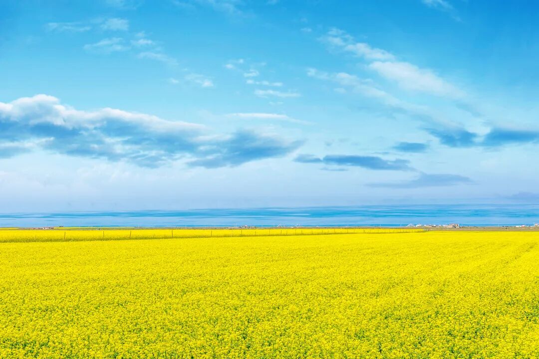 湖光、山色、油菜花、白色的毡房、低头吃草的牛羊,在这片天地里,仿佛组成了一幅生动的油画。环湖骑行的驴友们,穿梭其中,仿佛来到了一片梦幻世界。