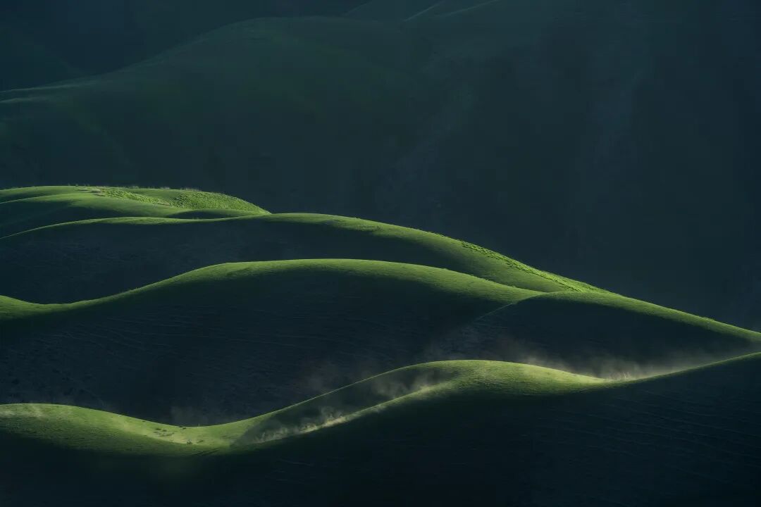 喀拉峻大草原,诞生在天山海拔2000-3600米的夷平面上,广袤无垠,纵横起伏,那优美的曲线诉说着原始的美丽。