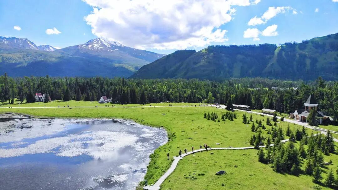 这里是全球雪岭云杉最集中的分布区,拥有单位蓄材量世界罕见的云杉森林资源。草原与花海、雪山及云杉相映衬,美成了一幅幅油画。