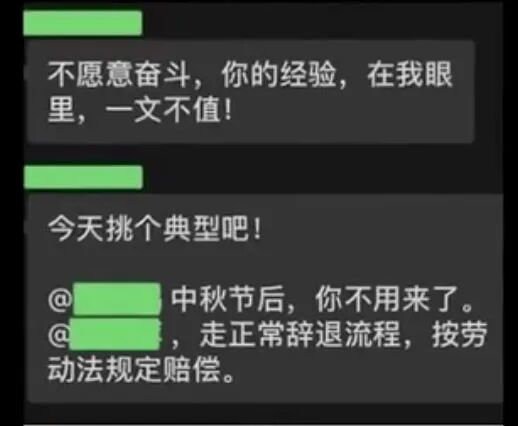 为了让自己的话显得更有权威,找了一个典型,在群里直接当场「清理」了一名员工。