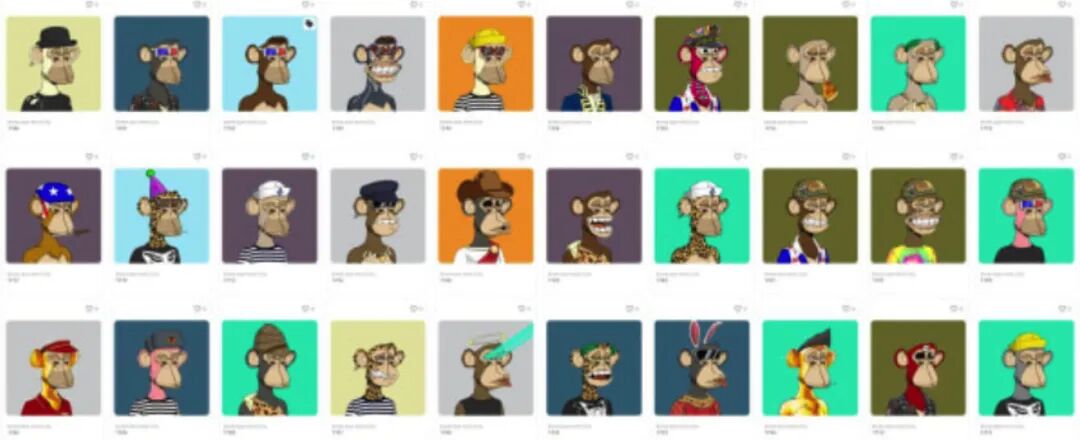话还得从四个月以前讲起,当时在 NFT 的市场中出现了一匹黑马 BAYC,累计销量超过了 NBA Top Shot,其创作的猿猴形象已经席卷了整个 NFT。BAYC,全称 Bored Ape Yacht Club(无聊猿猴游艇俱乐部) 的收藏品通过编程方式随机组成一万个猿猴,包括帽子、服装、背景等各种神态,每个猿猴的神态和表情都不同且独一无二。