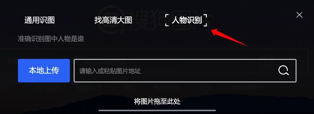 你打开搜狗的图片搜索,它会让你选择你是通用识图呢,还是搜索高清大图,还是人物识别。通用识图就是只识别相近的图片,不会带出其他信息,但是人物识别就不一样了,你上传了图片之后,会搜索出人物相关的信息。