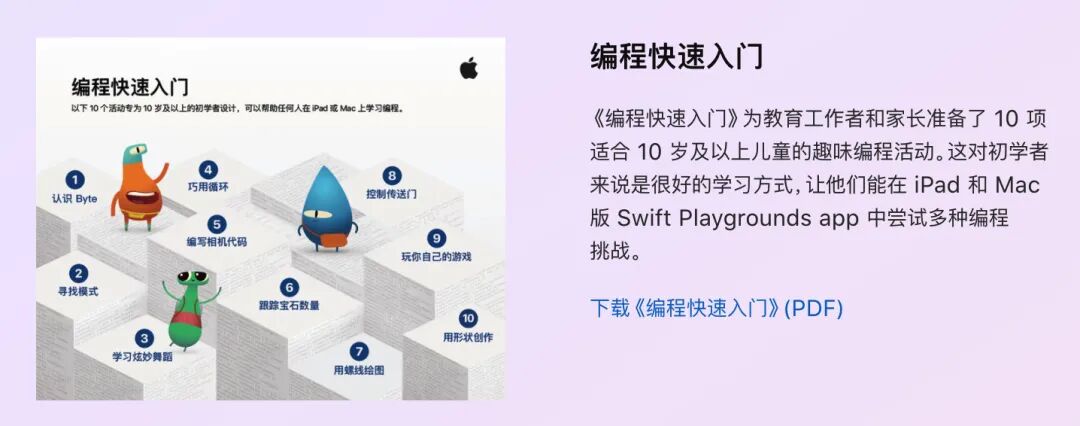 各位程序员同志们,以后想要培养自己的孩子从小学习编程的话,不用去培训班了,可以直接在苹果官网下载资料,自己在家里教孩子了。