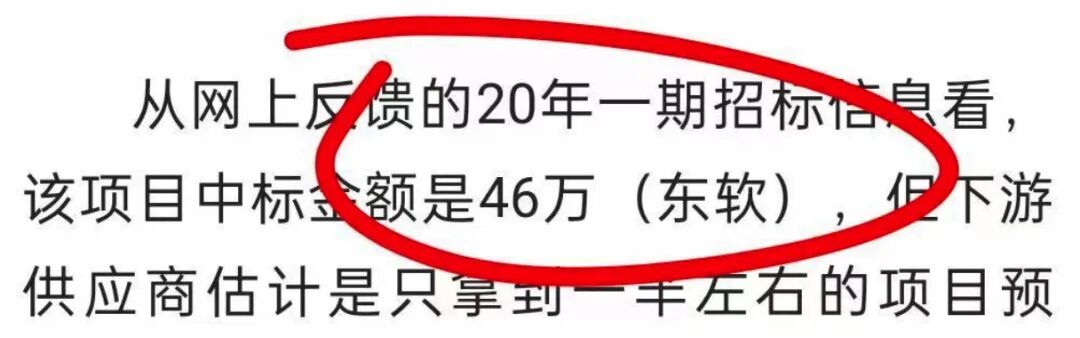 中标单位是知名外包公司东软,但是一期的价格是:46 万。