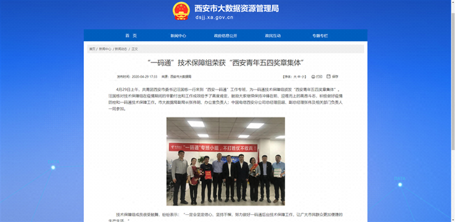 对此,一码通技术保障组还荣获了 2021 年 “政府信息化管理创新奖”,以及 2020 年 “西安青年五四奖章集体”。