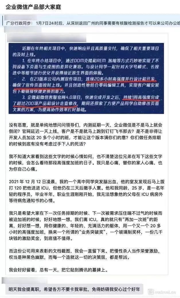 这种颁奖词给腾讯的员工看到了是什么感受?噢,公司颁奖原来看的不是谁创造的价值高,谁的效率高,而是谁工作强度大,谁在公司加班了?这不是变相,明里暗里的在提醒员工你们应该加班吗?