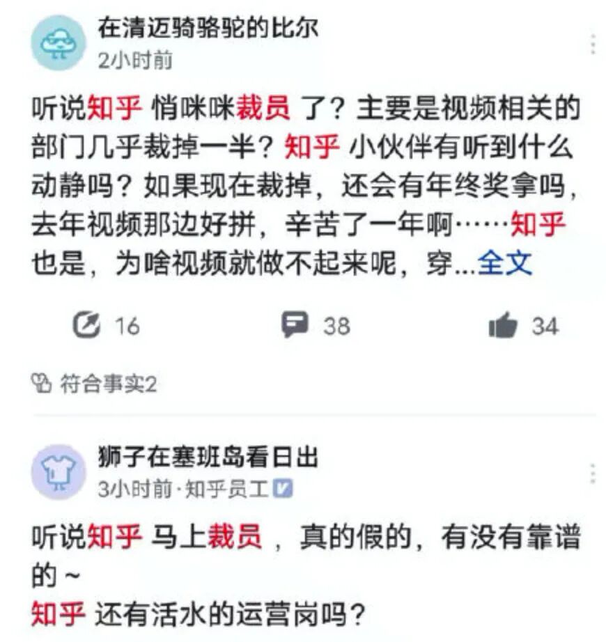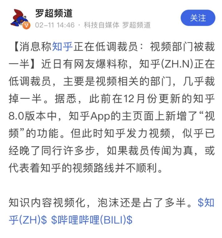 然后,正期待知乎改变战略,回归初心的时候,知乎回应传言:在视频业务上没有裁员计划。