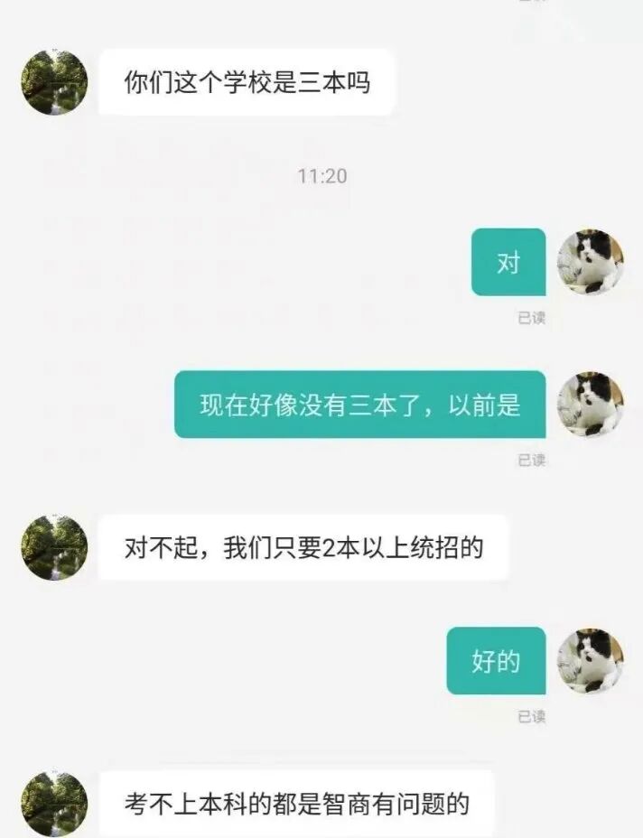 前几天有一个新闻特别火,一个求职者想投递杭州城市大数据公司的产品运营岗位,公司 HR 询问其学历,并表示只招收二本以上的,称“考不上本科的都是智商有问题”。