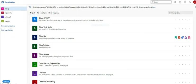 上周末,Lapsus$ 在 Telegram 上发布了一张屏幕截图:左上角的 “Azure DevOps”、“Bing”、“Cortana” 的文件名等,无一不在展示其 成功入侵微软 Azure DevOps 服务器,掌握了 Bing、Cortana 及各种内部项目的源代码。