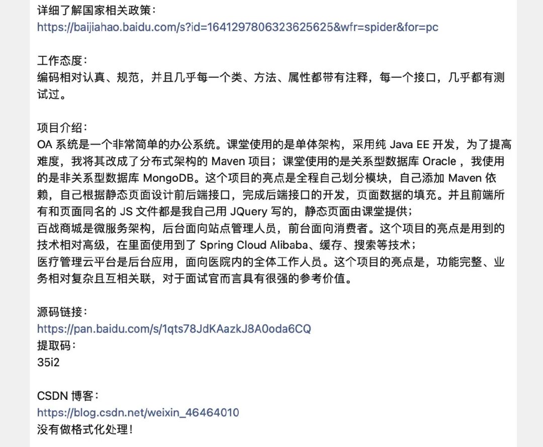 他一直专注于后台 Java 的学习,我看了看源码链接,里面的项目就是跟着培训结构的视频开发的 OA 办公系统,最起码有过实操的项目了。