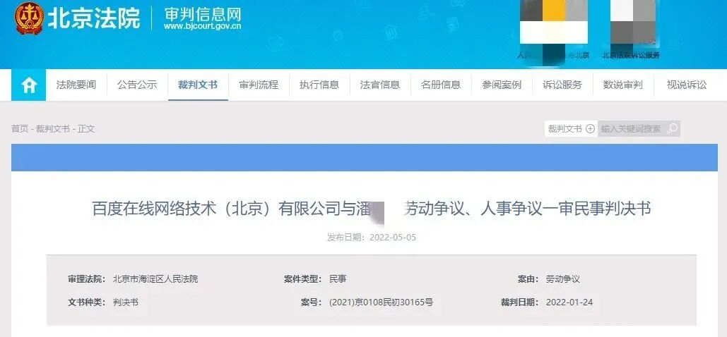 对这件事,劳动也仲裁了,百度不服,感觉违约赔偿金额太少,所以,双方你来我往,百度提起了法律诉讼,最终法院判决: