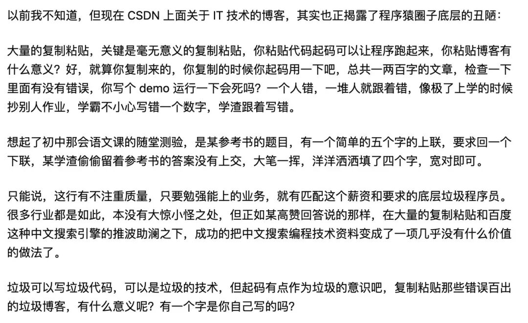 我看有一个知乎网友的回答也挺好的,给 CSDN 一字不改的转载大军们写了一封信,如下: