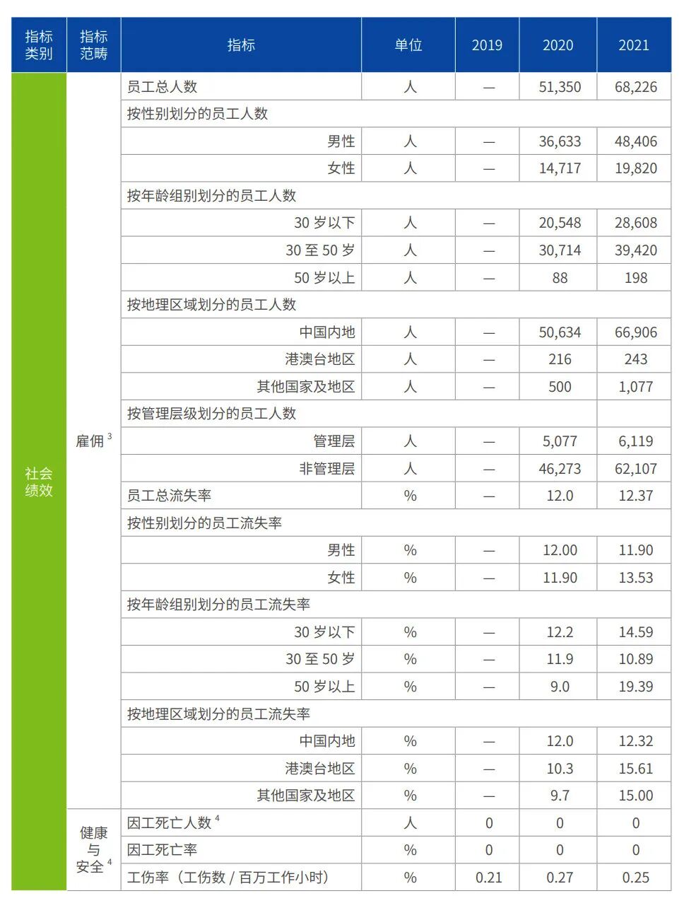 2021 年腾讯员工总人数为 68,226 人,与 2020 年的 51,350 人相比增长了一万余名员工,其中男性员工增长了 11,773 人,女性员工增长了 5,103 人。此外,2021 年腾讯公益平台全年获得筹款项目数量为 26,000 个,与 2020 年的 13,085 个相比近乎翻倍。