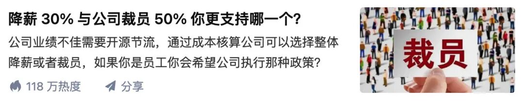 同学们,最近风头不对啊,前年我们在互联网上还铿锵有力的在反对 996 ,开展 996ICU 运动呢,去年还在热烈讨论职场 PUA 的话题呢,到了今年怎么开始讨论:降薪和裁员,我们支持哪一个了呢?