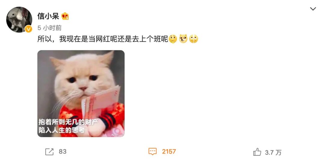 在我们还在讨论她的时候,人家还在想是不是继续当网红呢?