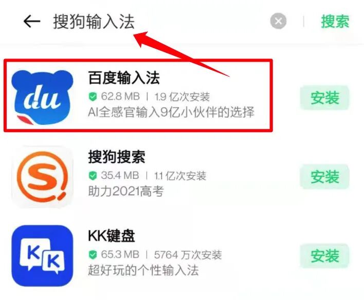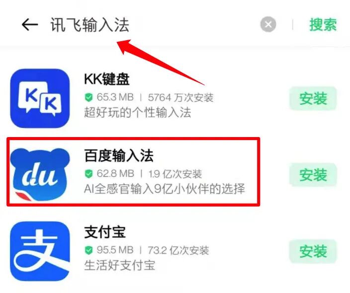目前,你去各大应用市场搜索「输入法」三个字,出来的都是百度输入法,已经看不到搜狗,讯飞这样的输入法了。