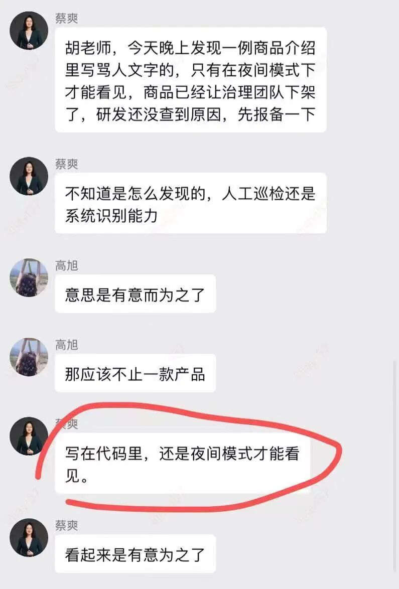 我猜大概率可能是商家找外包程序员设计这个商品详情页,装饰店铺,最后,可能在利益分配上出现了分歧和矛盾,该给这个程序员的钱没给,导致这个程序员就来了这么一出,你白天验收的时候看不到,到了晚上,切换到夜间模式才能看到。