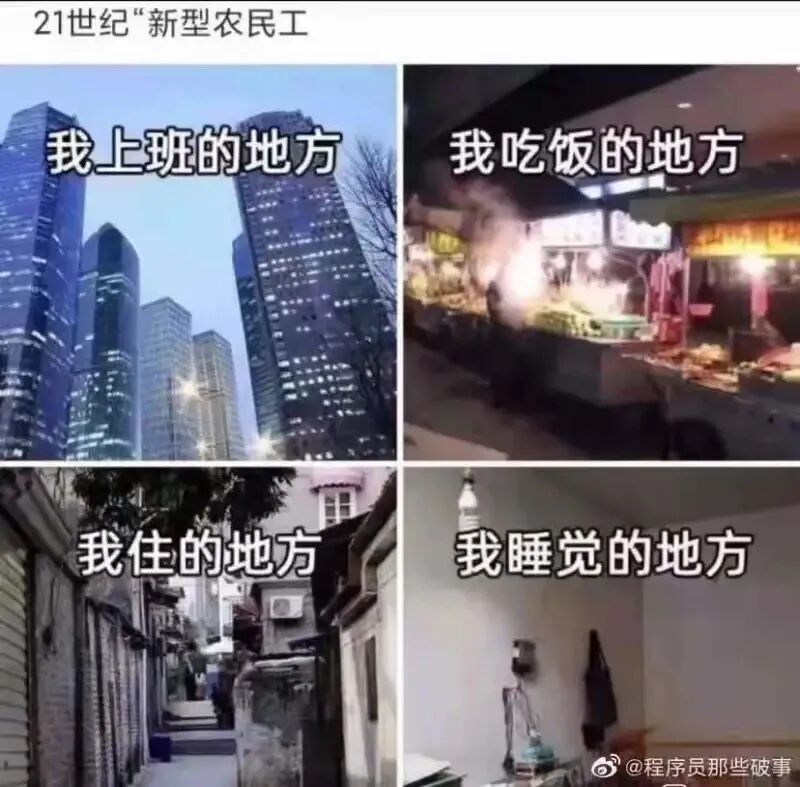 你想一想,以前的农民工干的是纯体力活,你现在在互联网公司上班,天天 996 ,不仅拼体力,还拼脑力,是不是比以前的农民工还累呢?