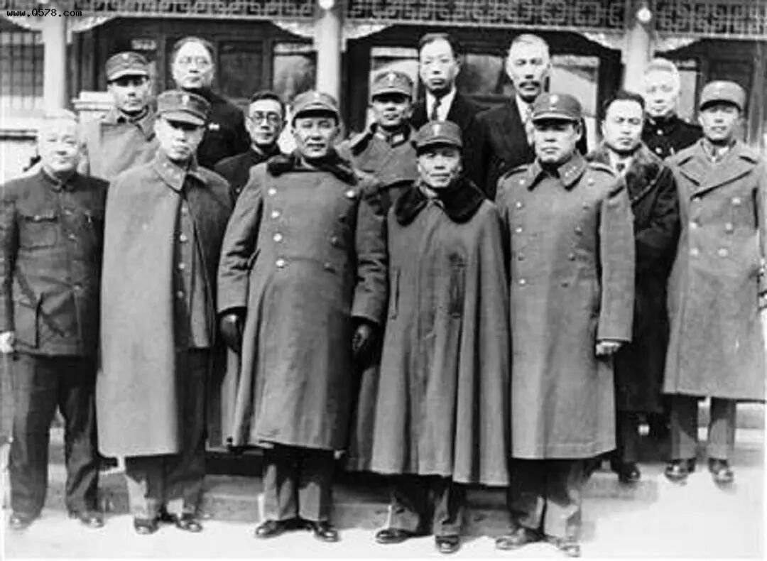 在合影的时候,一身戎装的李宗仁站在蒋介石身后,活脱脱就像蒋的一个副官。很显然,这是蒋介石不满李宗仁就职,给他的一个下马威。