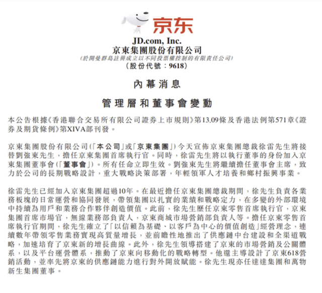 即刘强东卸任只是退隐到幕后,京东的整体发展规划和决策及企业的定位,他仍牢牢把控着。