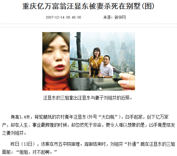 新华网曾刊登汪显东被杀之事