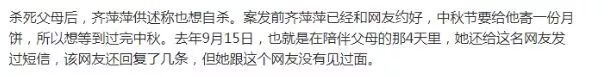 那么为什么齐萍萍不当场自杀呢?(因为她答应了一个未见面的网友要寄送中秋节月饼,真是一诺千金啊!)