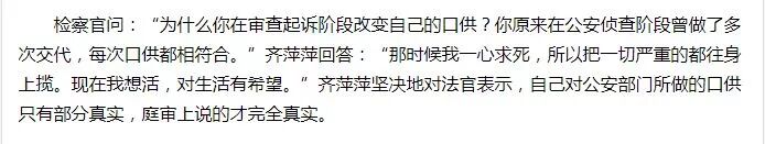 在庭审过程中,齐萍萍的求生欲望很强,智商貌似也不差,很会找给自己减罪的法律依据。