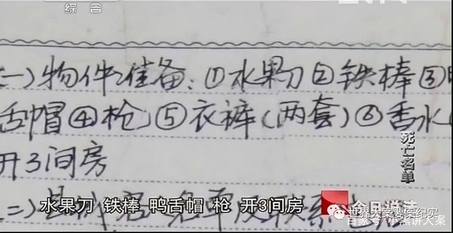 很明显这三页纸是嫌疑人的一个杀人计划,共分三个部分,一是物件准备,而是县城客人名单及电话,三是乡下客人名单。而“不管是大人还是小孩,见一个毙一个!”这句话就出现在第三部分,很可能凶手跟某个村子的人都结了怨。