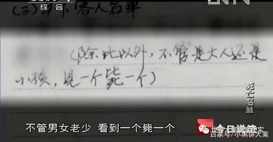 这时,警方已经拼凑起全部的三张纸。名单中一共有26个人,其中3个人已经遇害。而在第三张纸上更是写着的一句话更是让人心惊肉跳!-不管是大人还是小孩,见一个毙一个!