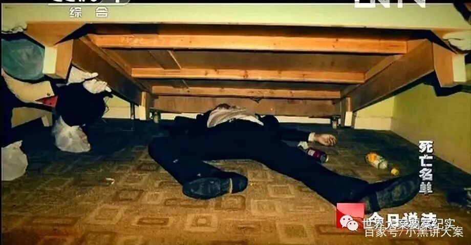 当警方往床底看的时候,发现一双脚在床下面!吓了现场的警察一跳,万一是嫌疑人躲在下面,那他手里可能有枪!现场的人赶紧撤了出去,作了一番武装之后警察再次进入房间。掀开床后发现是一名男性,也死了。年龄四十岁左右,跟上名死者一样,也是头部遭钝器敲打死亡,死亡时间大约在上午10点左右。