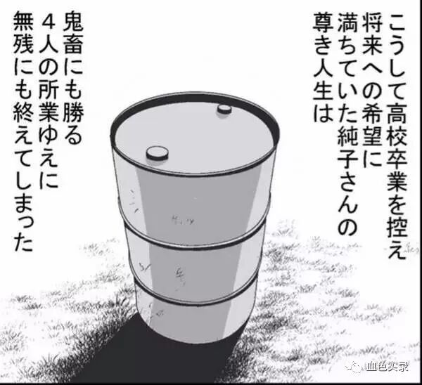 案件简述:日本80年代发生轰动一时的女高中生水泥藏尸案,17岁死者古田顺子被禁锢40多日,期间遭受殴打、性虐、奴役,并被轮奸上百次。其中一名犯人的父母知道事件却不施予援手,任由顺子被人凌辱,最终被活生生虐待致死,然后尸体被装进汽油桶,灌注水泥后抛尸。