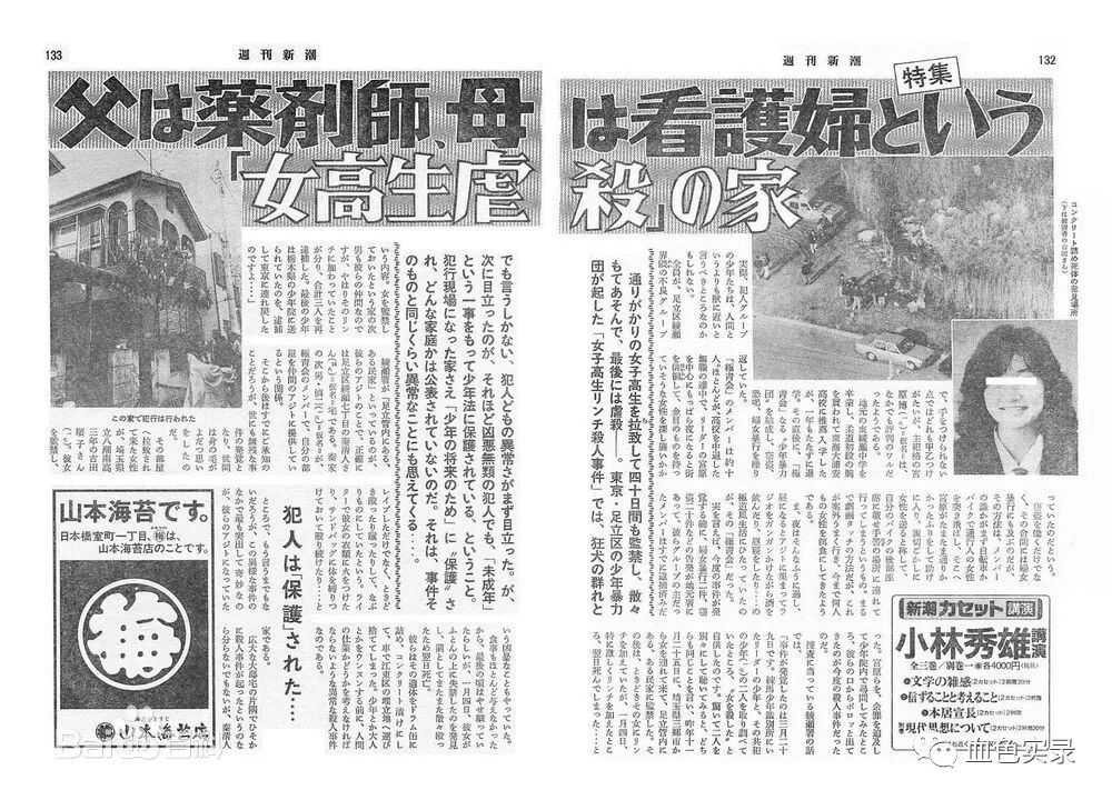 实名报道的《周刊文春》在1989年4月13日号中《残忍地监禁杀害女子高中生的他们,有受到少年法的保护的必要吗?》。
