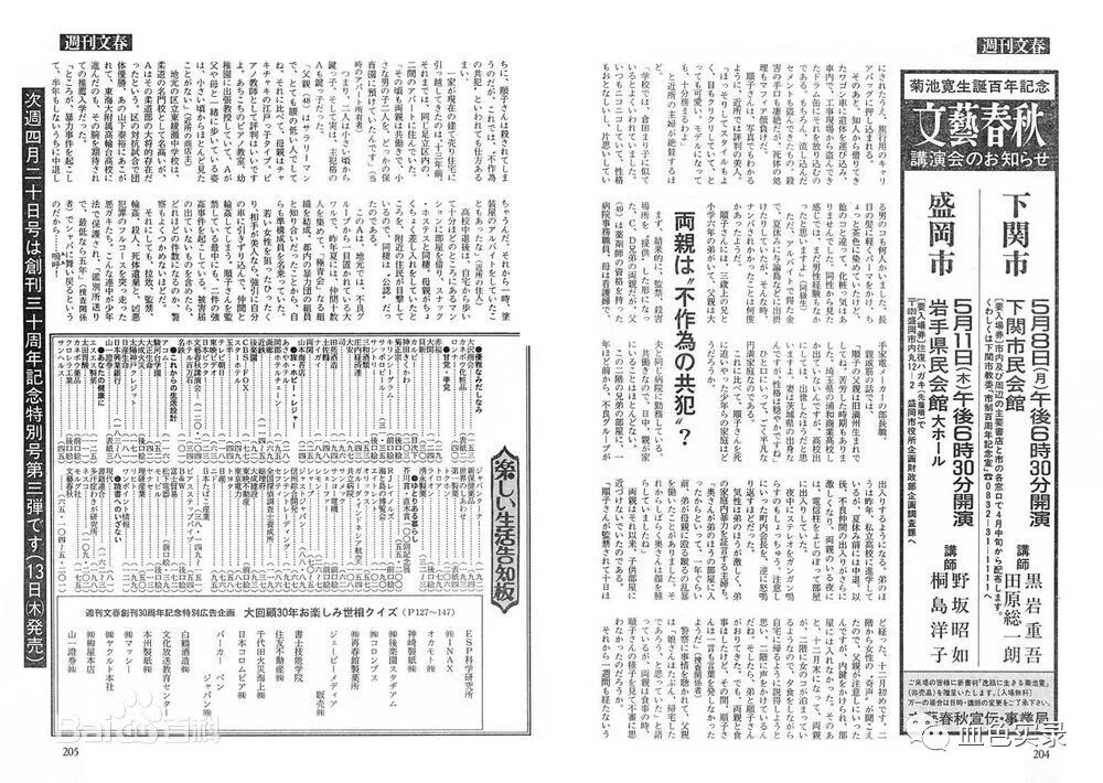 在1989年4月20日号在《女子高中生惨杀事件 第2弹 公布加害者姓名吧》这一特集中认为“因为这个案件过于残忍,”“野兽是没有人权的”。