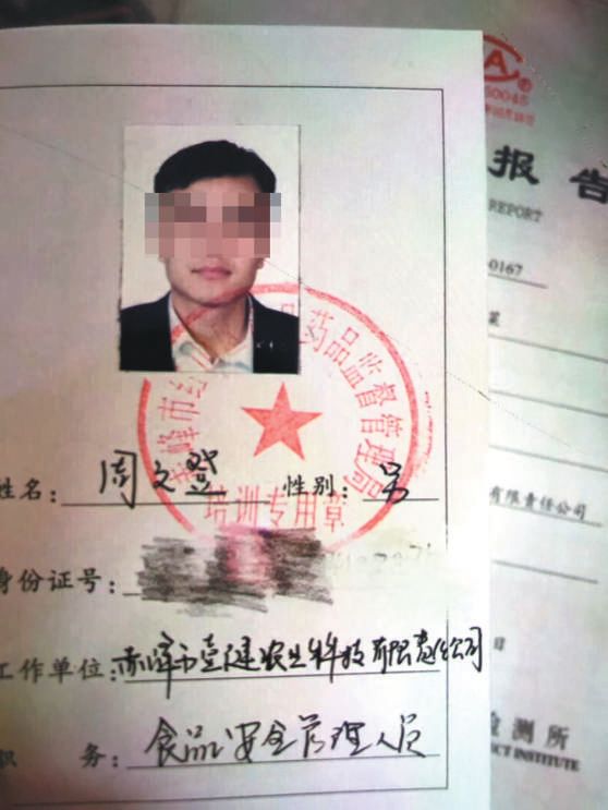 ▲周文登发在朋友圈的证件照片,他曾注册成立了赤峰市壹健农业科技有限责任公司。新京报记者 向凯 摄